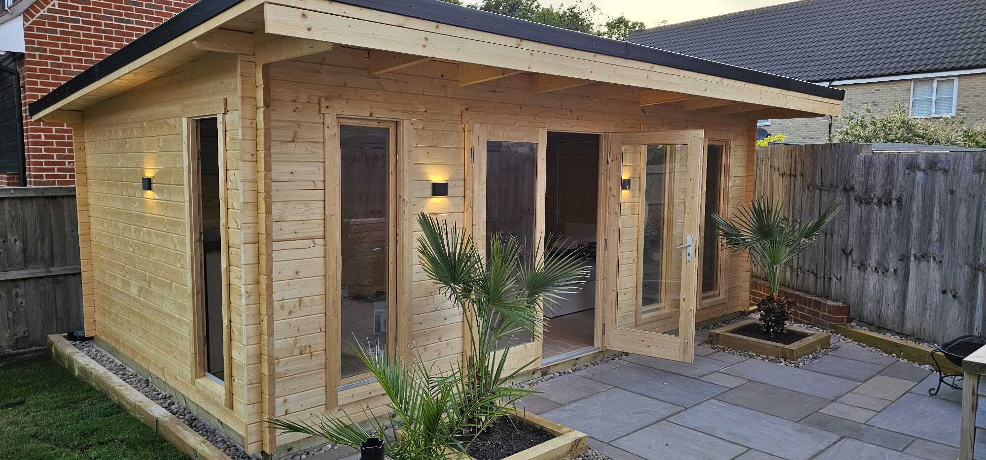 Add an outside patio space for that special romantic element, just perfect for evenings sipping cocktails watching the sun go down. Dress this space with gorgeous plants and twinkling lights to give that extra special feel, giving you extra space to dine and entertain.You can choose a timber decking or upgrade to composite decking for that extra polished finish and why not edge with sleepers too? Please ask about any additional groundworks you may be interested in as we are confident we can make your dream cabin come true.
