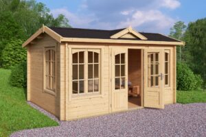 The Shetland is a larger cabin at 5.75m x 3m , this makes it great value for money per sqm! So if youre looking for something bit bigger you cant go wrong with the Shetland with its two larger windows and double doors giving great visability.