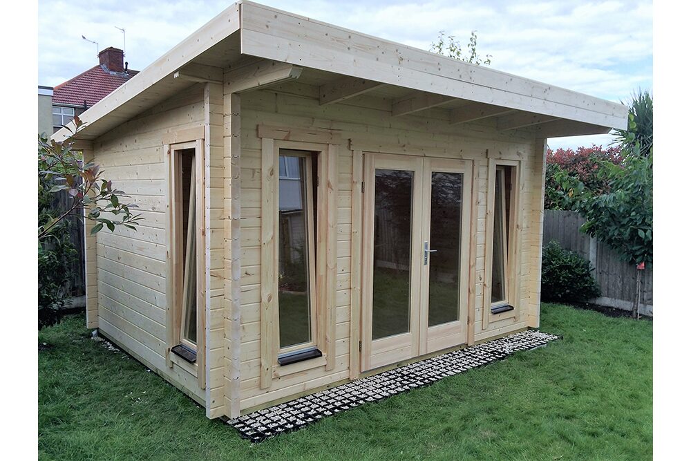 Pent roof summerhouse with thicker logs for a warmer feel.