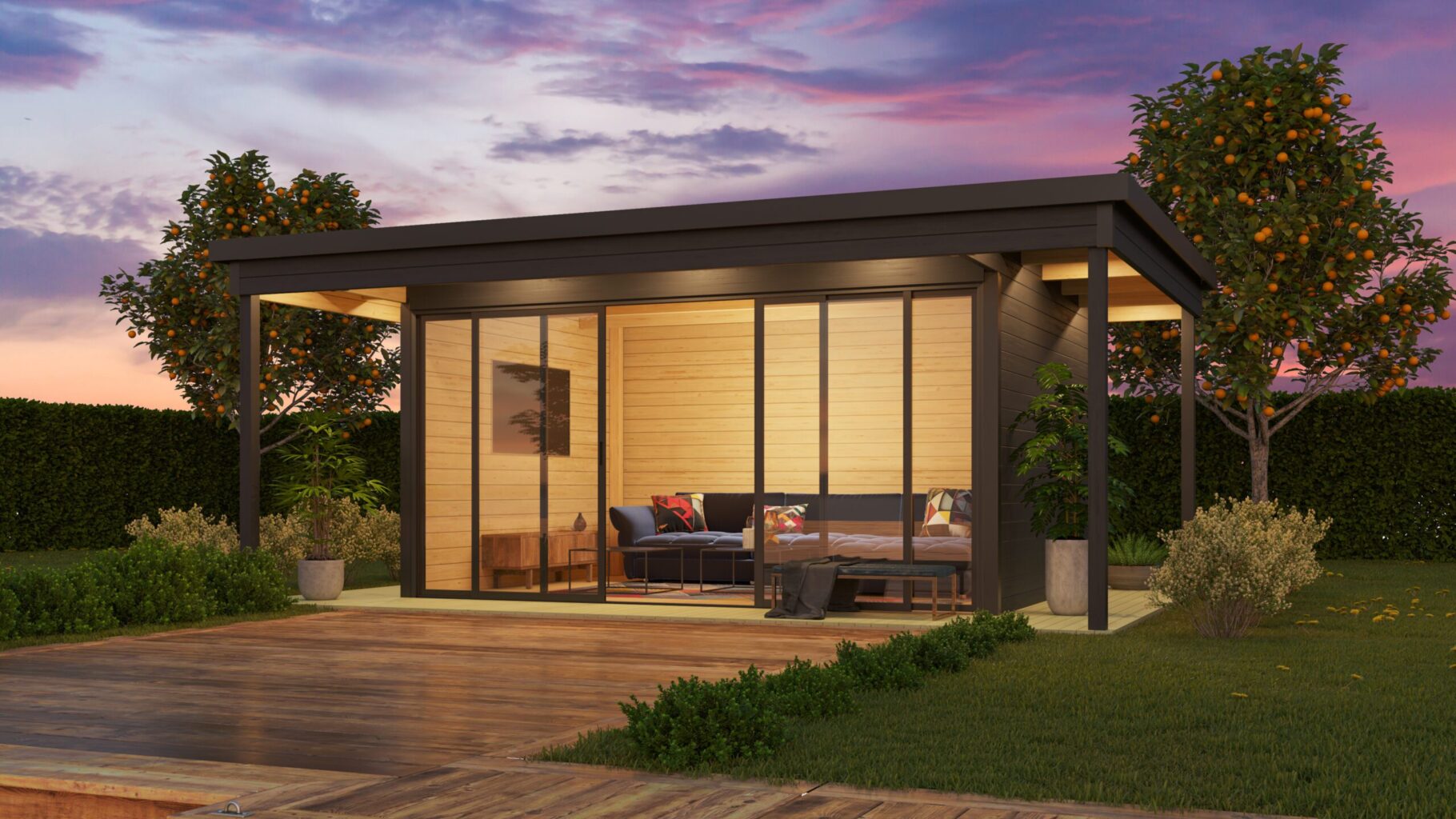 The Domeo 4 Loggia garden building blends outdoor living with indoor comfort. This upgraded version of the Domeo 4 features a generous roof overhang, ideal for creating a shaded seating area or barbecue spot. It brings a modern look to any garden and serves as a multi-purpose space.