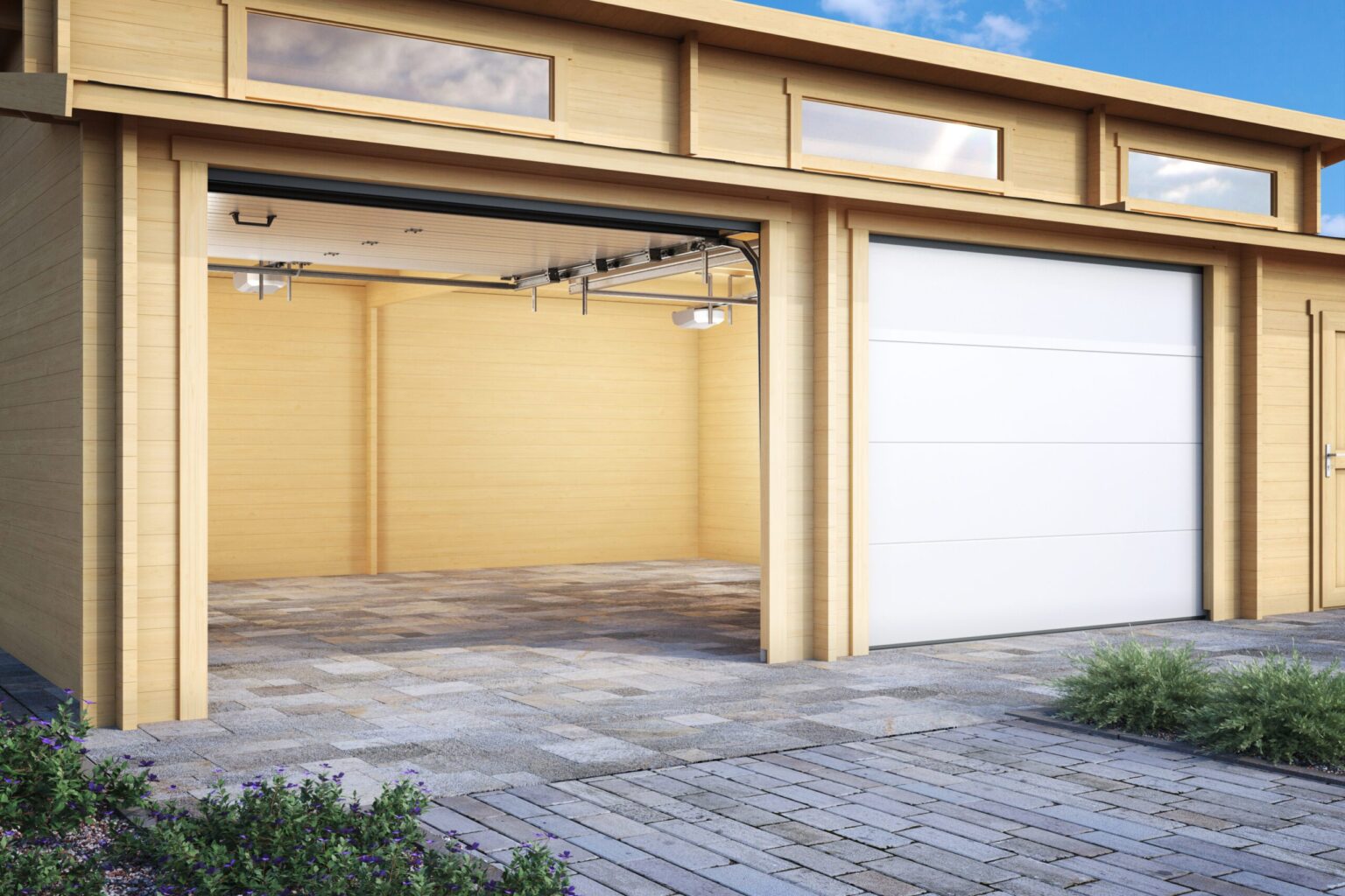 The garage itself is made with 44mm logs and is adequately spaced for two cars car. and has an internal space of 39.4m. The garage does not have a floor and we recommend a re-enforced concrete slab floor or we can fit a probase grid floor. Please discuss the base and floor with our team.