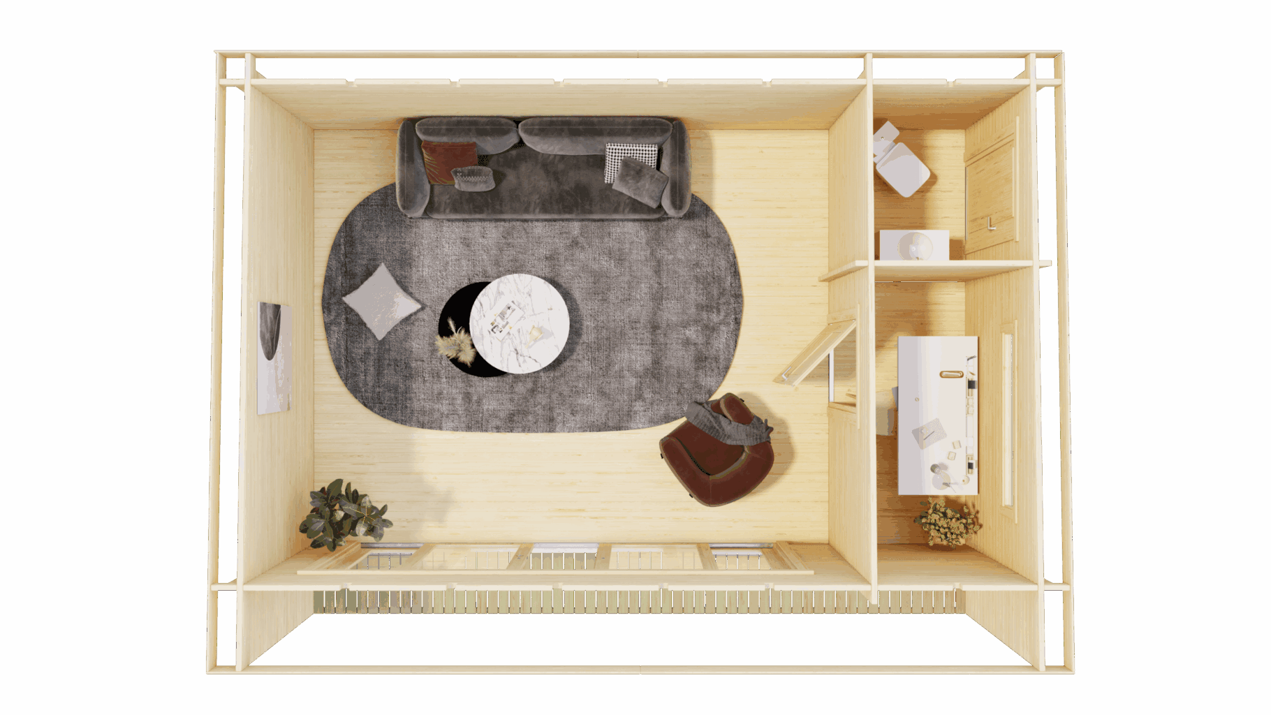 The Java is a beautifully designed multi-room summerhouse that offers the perfect balance of style and function. Measuring 6.08m x 3.9m (20ft x 13ft), this timber cabin includes a spacious main room, a private internal room, and a separate storage space—ideal for modern outdoor living.