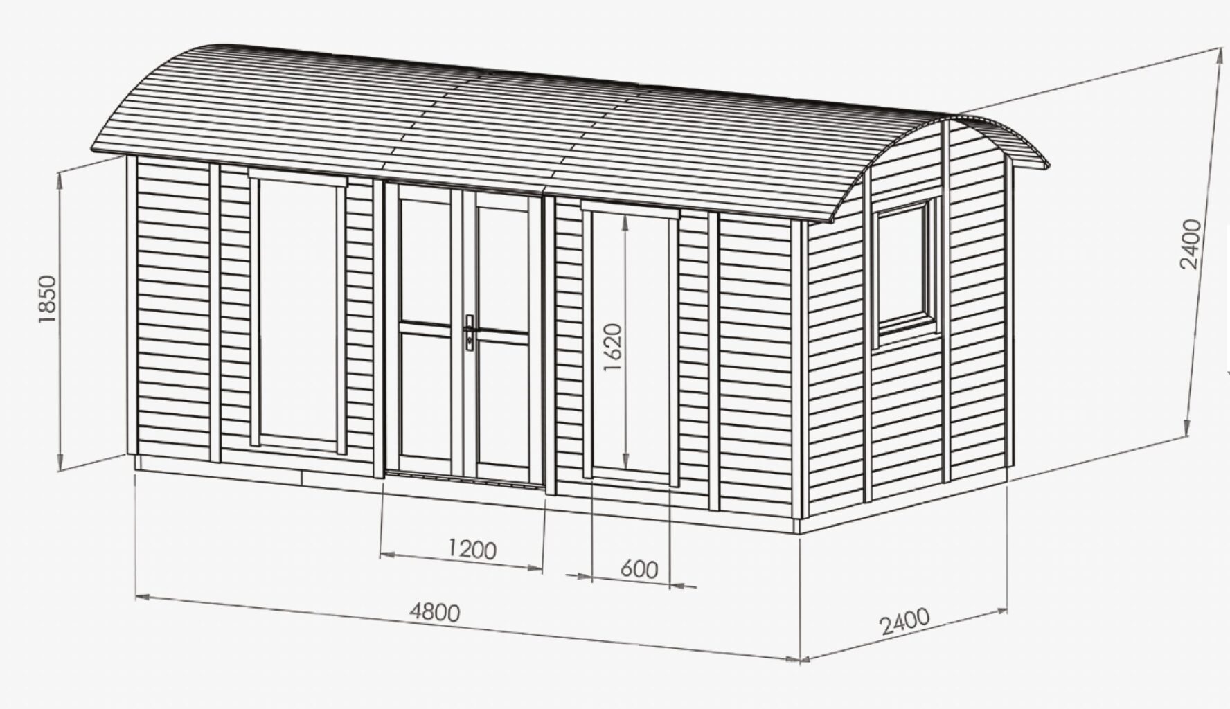 4.8m x 2.4m, Height: Over 2.5m, Wall Thickness: 19mm