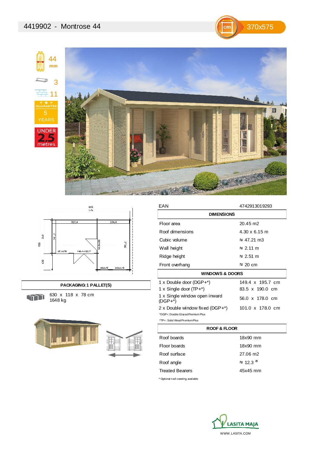 All warranty information for this garden building can be found in our Lasita Warranty Section.