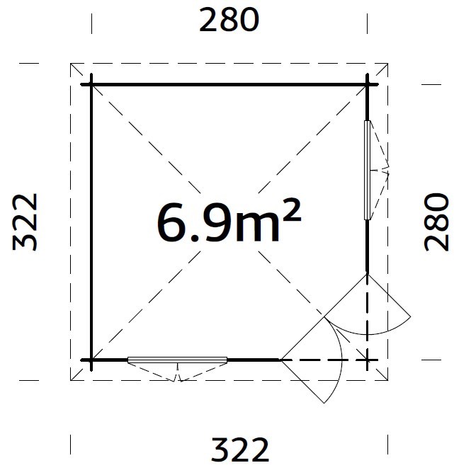 2.8m x 2.8m, Height: Over 2.5m, Wall Thickness: 44mm